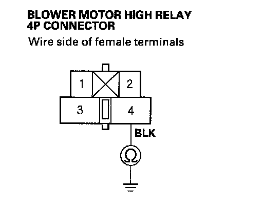 28. Check for continuity between the No.4 terminal of the blower motor high relay 4P connector and body ground.