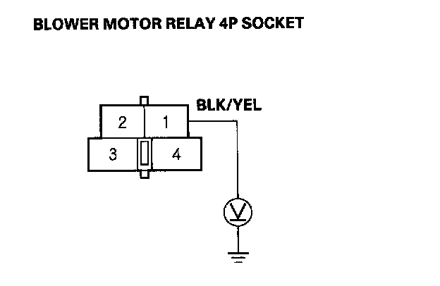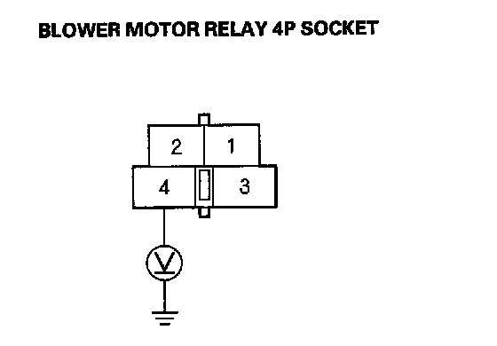 38. Measure the voltage between the No.1 terminal of the blower motor relay 4P socket and body ground.