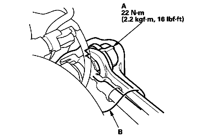 5. Place a rag or shop towel (B) over the fuel pulsation damper.