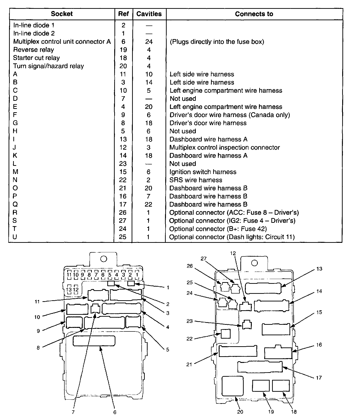 Driver's Under Dash Connector-to-Fuse/Relay Box Index: