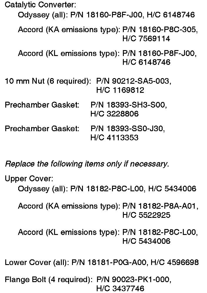 1. * Accord only: Determine the emissions type (KA or KL) of the vehicle. Either do a VIN Status Inquiry on iN, or examine the catalytic converter. On a KA emissions type vehicle, the secondary oxygen sensor is in the rear of the converter. On a KL emissions type vehicle, the oxygen sensor is in the middle of the converter.*