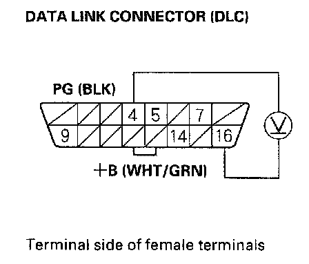 1. Measure voltage between DLC terminal No.16 and body ground.