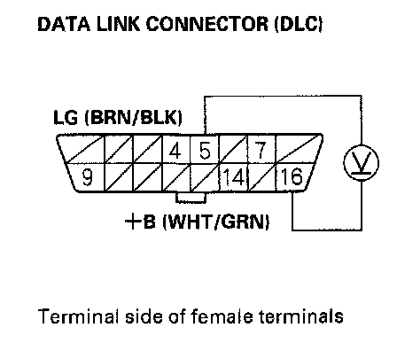 3. Measure voltage between DLC terminals No.5 and No.16.