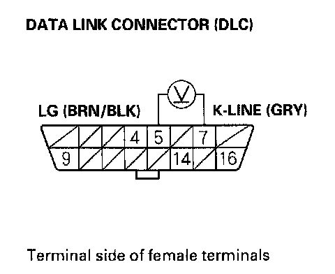 13. Measure voltage between DLC terminals No.5 and No.7.