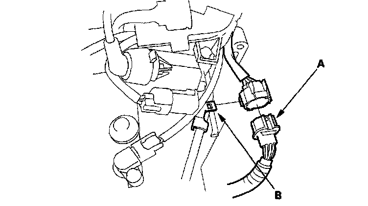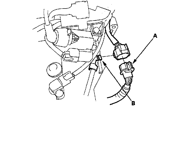 11. Connect the transmission range switch connector (A), then install it on the connector bracket (B).