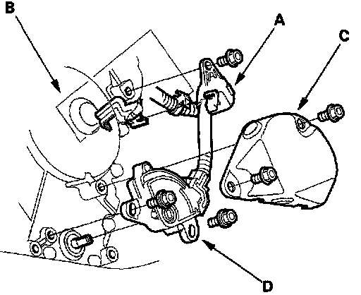 6. Remove the transmission range switch cover (C), then remove the transmission range switch (D) from the end cover.