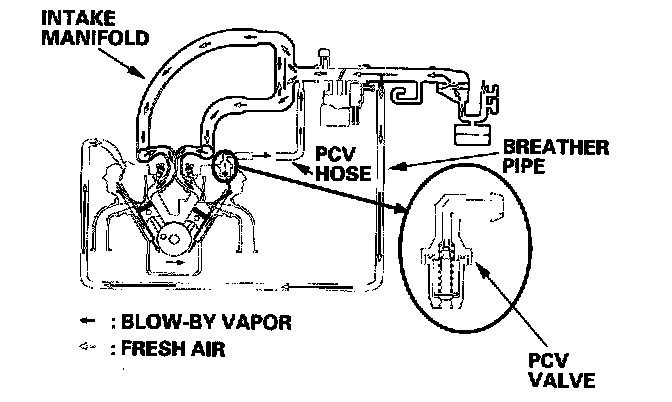 The PCV valve prevents blow-by gasses from escaping into the atmosphere by venting them into the intake manifold.