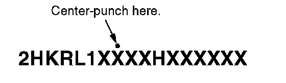 14. Center-punch a completion mark above the eighth character of the engine compartment VIN.