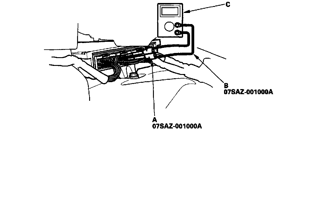 How to Check for DTCsWhen the PCM senses an abnormality in the input or output systems, the D4 indicator in the gauge assembly will usually blink and/or the Malfunction Indicator Lamp (MIL) may come on. When the Data Link Connector (DLC) (located next to the driver's side kick panel) is connected to the Honda PGM Tester, the D4 indicator will blink the Diagnostic Trouble Code (DTC) when the ignition switch is turned ON (II). When the D4 indicator has been reported on, connect the Honda PGM Tester to the DLC. Turn the ignition switch ON (II), select Honda Systems, and then the SCS mode, then observe the D4 indicator.