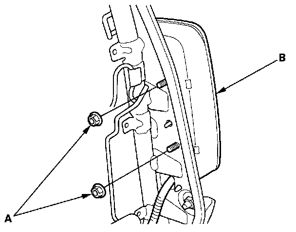 4. Remove the two mounting nuts (A) and the side airbag (B).