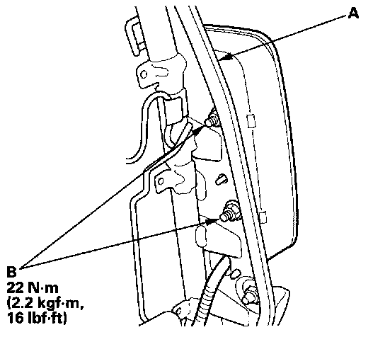 1. Place the new side airbag on the seat ,back-frame (A). Tighten the side airbag mounting nuts (B).