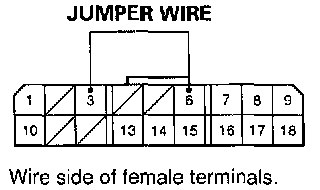14. Connect the SRS main harness 18P connector terminals No. 6 and No. 3 with a jumper wire and backprobe adapters.