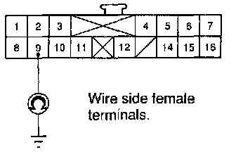 18. Check resistance between the No. 9terminal of the dashboard wire harness 16P connector and ground. There should be 1 M Ohm or more.