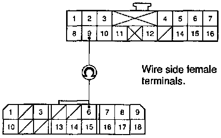 25. Check resistance between the No. 6 terminal of the SRS main harness 18P connector and No. 9 terminal of the dashboard wire harness 16P connector; there should be 0 - 1.0 Ohm.
