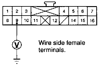 29. Connect a voltmeter between the No. 9 terminal (+) of the dashboard wire harness 16P connector and ground.