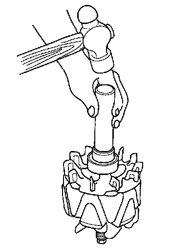 14. With a hammer and commercially available tools shown, install a new rear bearing in the rotor shaft.