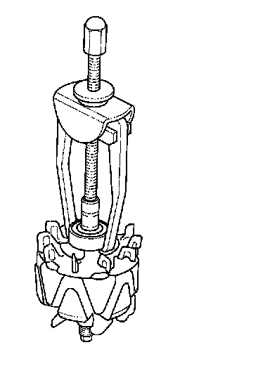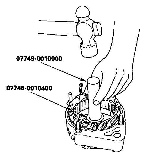 17. With a hammer and the special tools, install a new front bearing in the stator housing.