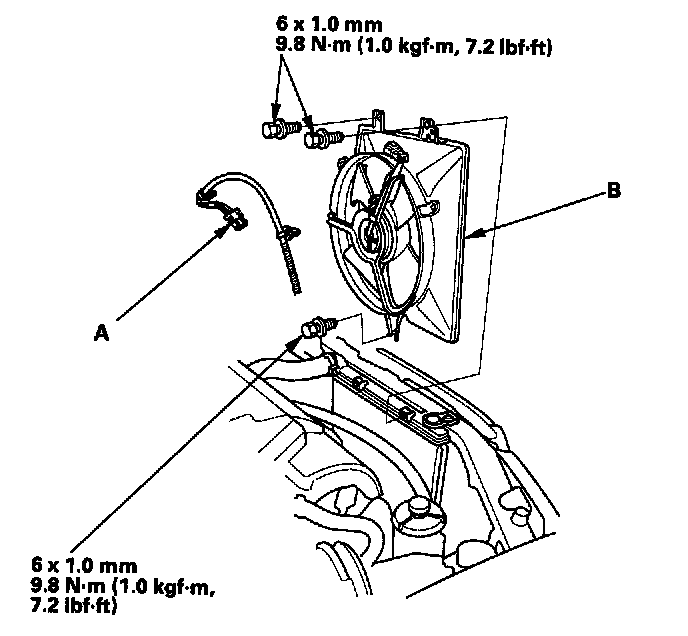 4. Disconnect the condenser fan motor connector (A) from the condenser fan shroud.