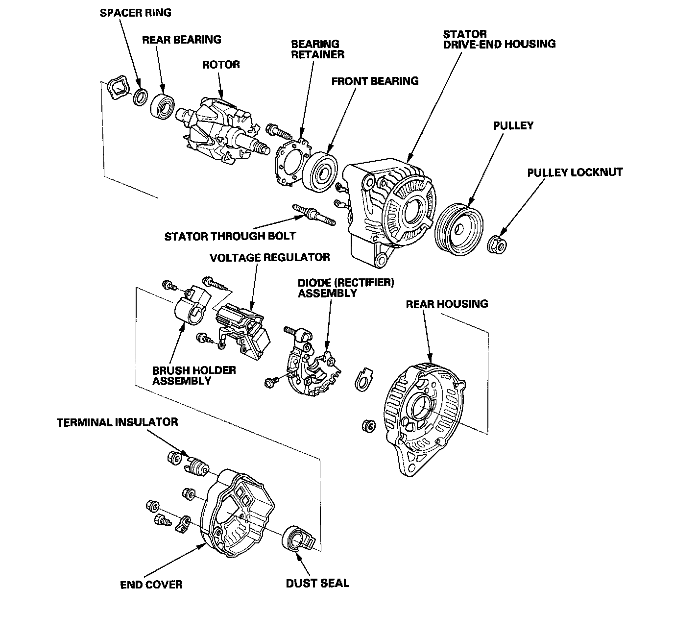 - If either the rotor or stator housing is damaged, replace the alternator.