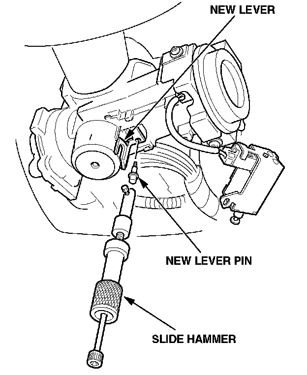 7. Attach the slide hammer to the new lever pin, insert the lever into the ignition switch, and seat the pin with the slide hammer.