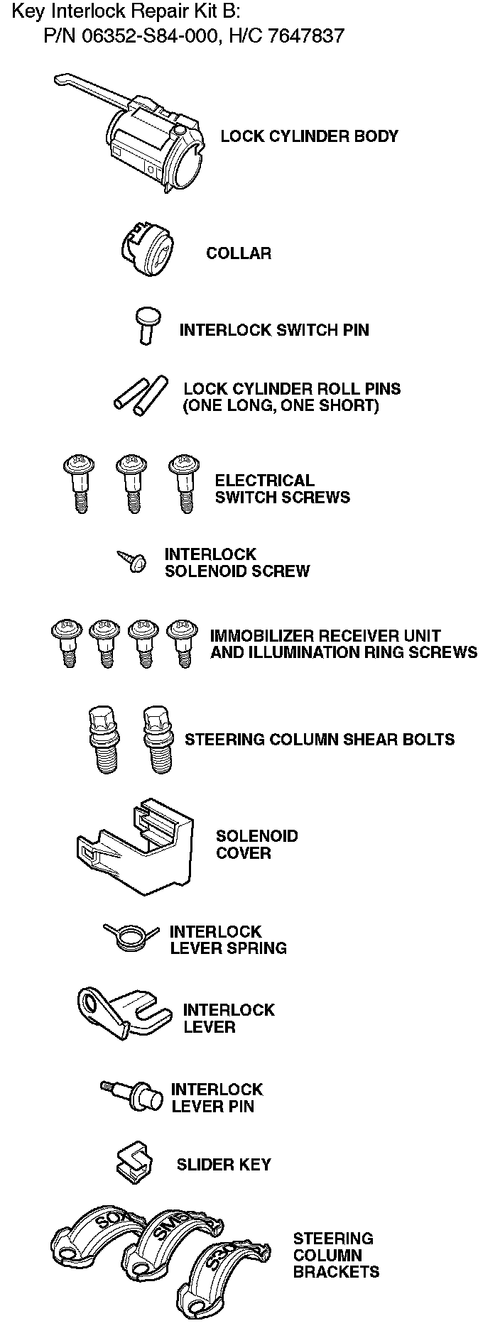 Inspect the interlock function of the ignition switch, and depending on whether or not the key can be removed, install Key Interlock Repair Kit A or Key Interlock Repair Kit B.