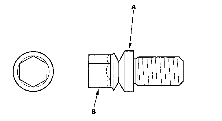 7. Tighten the shear bolts (A) until the hex heads (B) twist off.