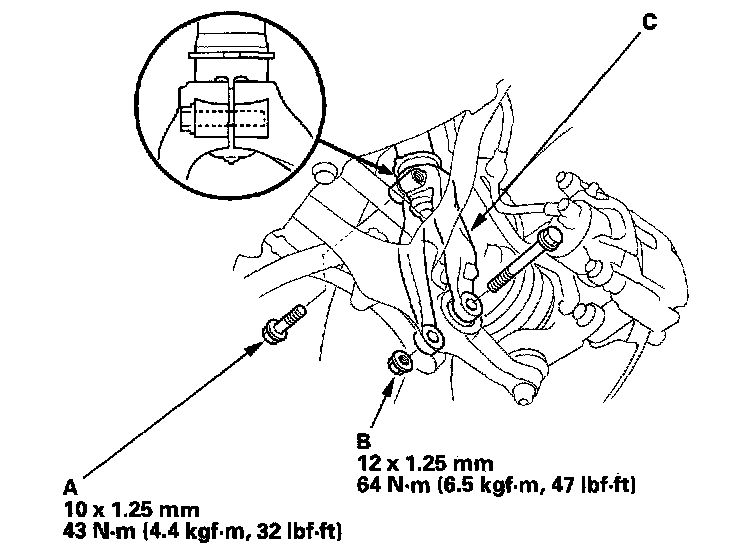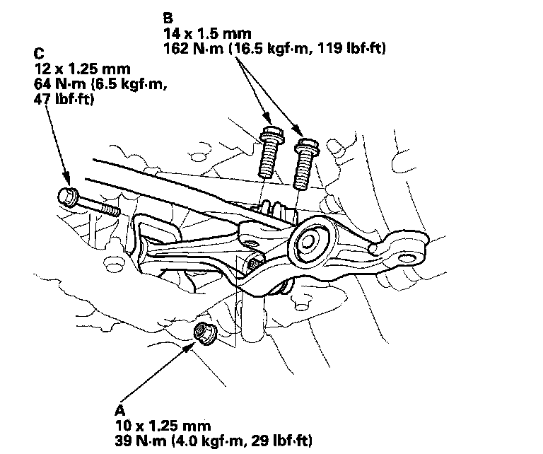 -3 Remove the lower arm mounting bolt (C).
