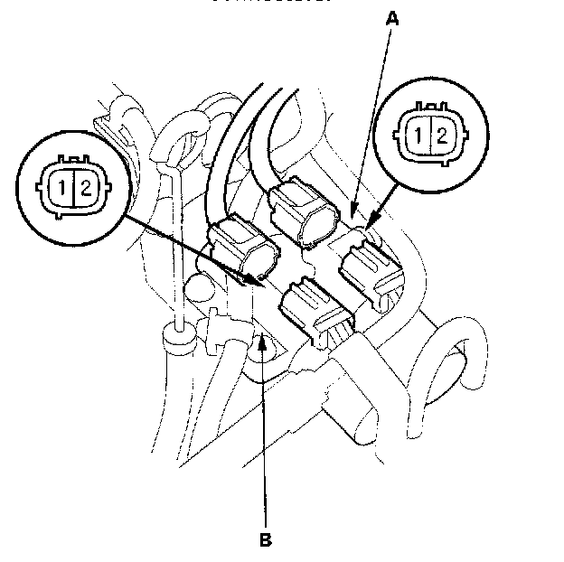 A/T Clutch Pressure Control Solenoid Valves A and B Test1. Disconnect the A/T clutch pressure control solenoid valves A and B 2P connectors.