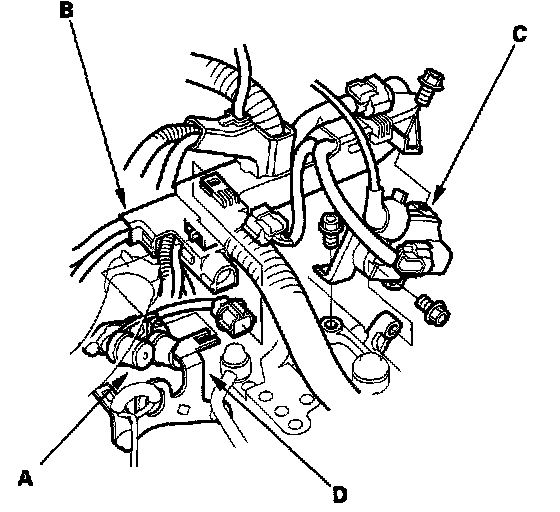 11. Remove the transmission ground terminal (D).
