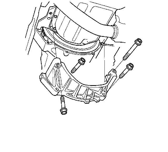 13. Remove the front engine mount bracket 3 mounting bolts.