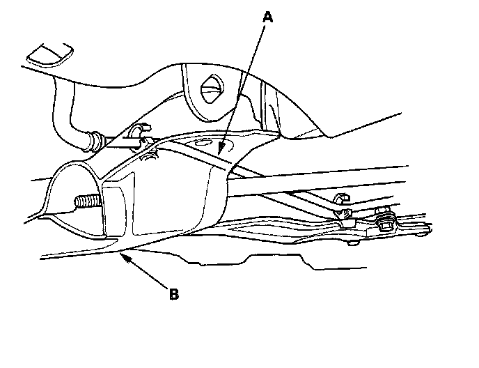 12. Install the front beam (A) in its original position by aligning the marks (B) you made in the removal procedure.