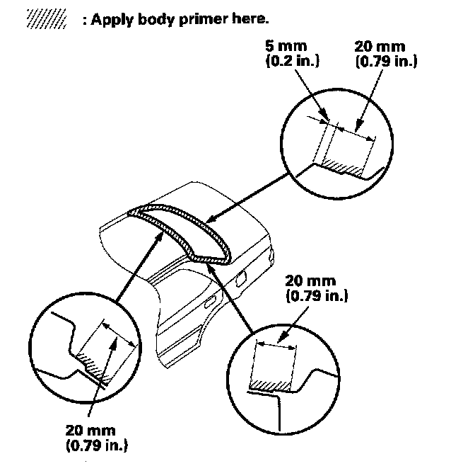 - Never touch the primed surfaces with your hands. If you do, the adhesive may not bond to the rear window properly, causing a leak after the rear window is installed.
