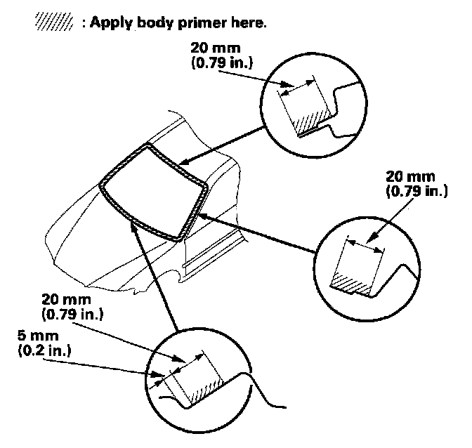 - Never touch the primed surfaces with your hands. If you do, the adhesive may not bond to the windshield properly, causing a leak after the windshield is installed.