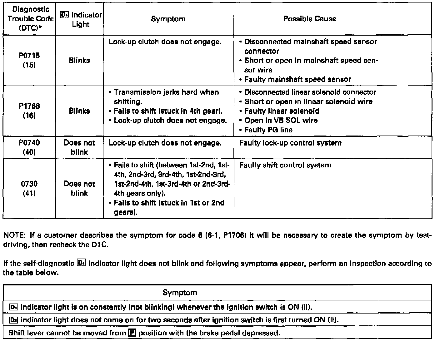 DTC List - Transmission Control Systems