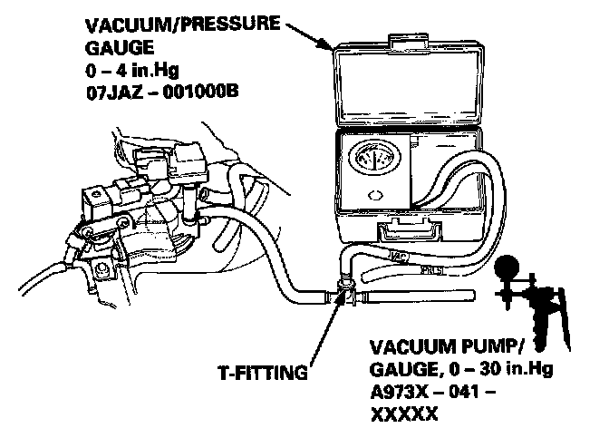 If the vacuum stabilizes (valve opens) below 0.8 kPa (6 mmHg, 0.2 in.Hg) or above 2.1 kPa (16 mmHg, 0.6 in.Hg), install a new valve and retest.