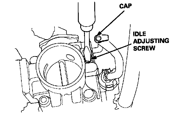4. Adjust the idle speed, if necessary, by removing the cap and turning the idle adjusting screw 1/2-turn clockwise or counterclockwise.