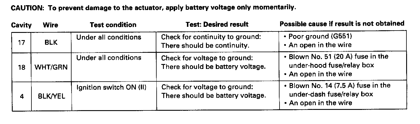 CAUTION: To prevent damage to the actuator, apply battery voltage only momentarily.