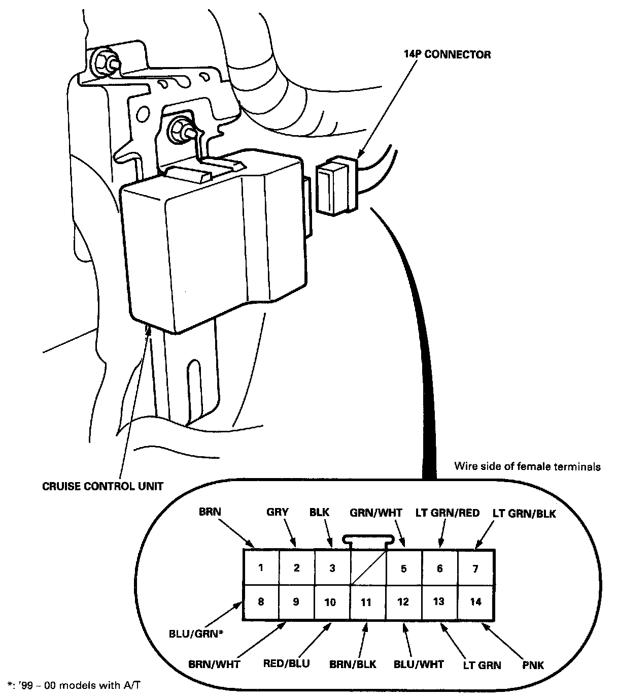 2. Disconnect the 14P connector from the control unit.