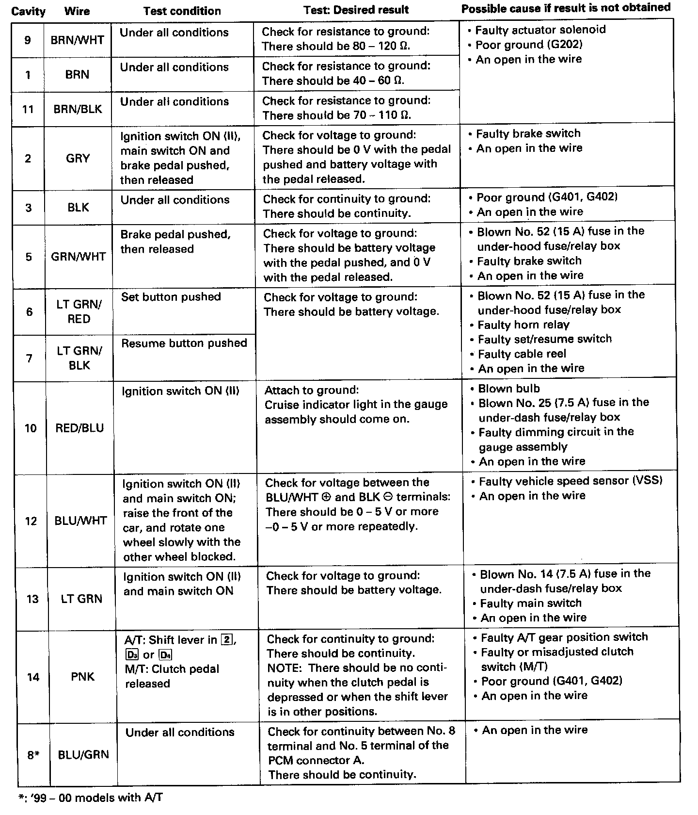 Cruise Control Module: Testing and Inspection