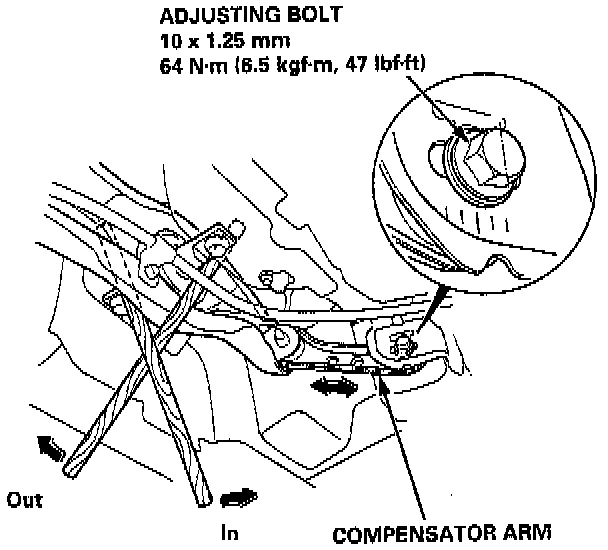 2. Before adjustment, note the locations of adjusting bolts on the right and left compensator arms.