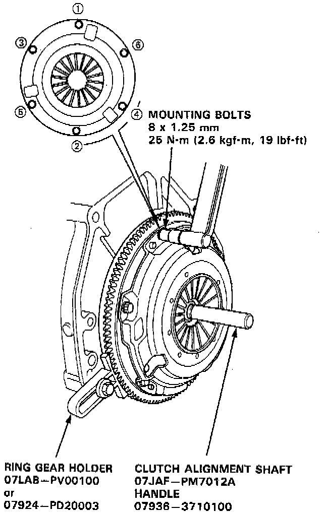 4. Torque the mounting bolts in a crisscross pattern as shown. Tighten them in several steps to prevent warping the diaphragm spring.