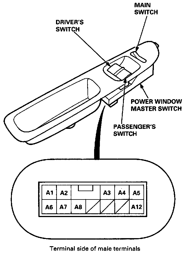 The driver's switch is combined with the control unit so you cannot isolate the switch to test it. Instead, run the master switch input test procedures at terminals A1, A3, A4, A8 and A12. If the tests are normal, the driver's switch must be faulty.