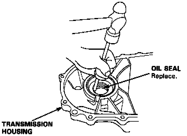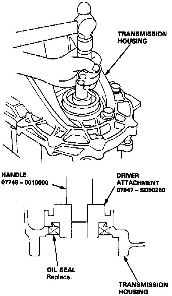 2. Install the oil seal into the transmission housing using the special tools as shown.