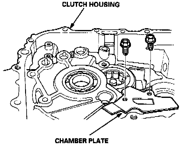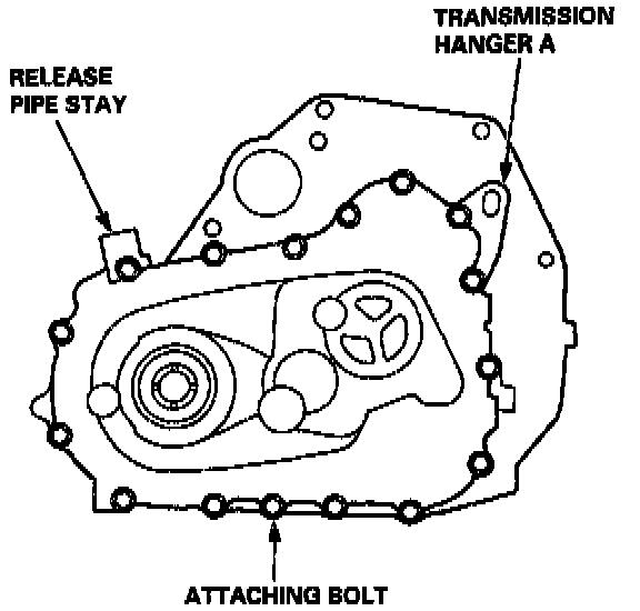 5. Loosen the transmission housing attaching bolts in a crisscross pattern in several steps, then remove them.