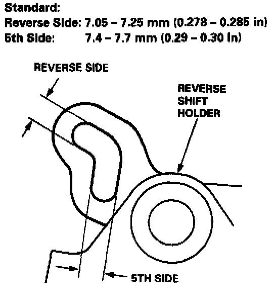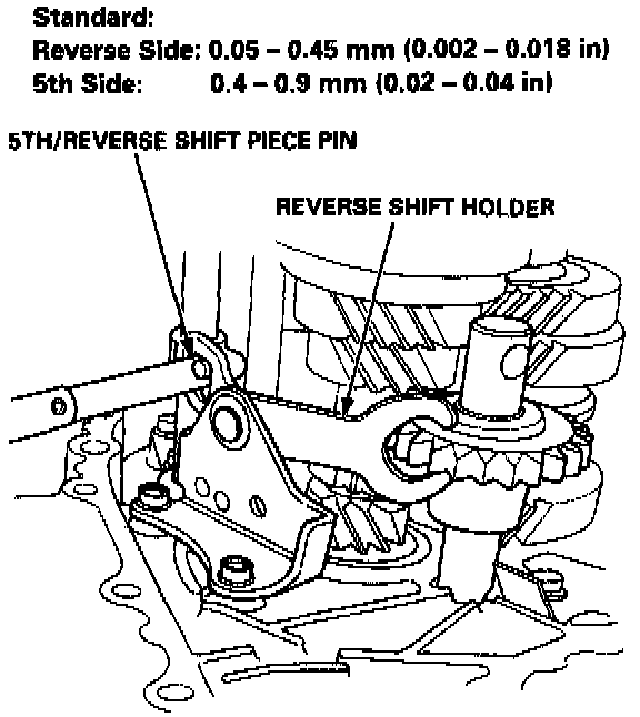 1. Measure the clearance between the reverse shift holder and the 5th/reverse shift piece pin.