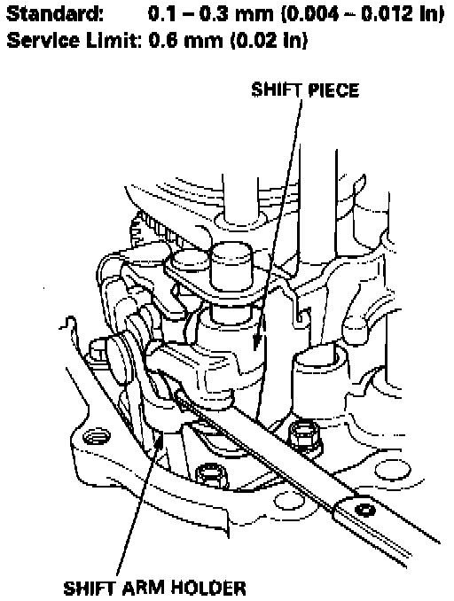 1. Measure the clearance between the shift piece and the shift arm holder.
