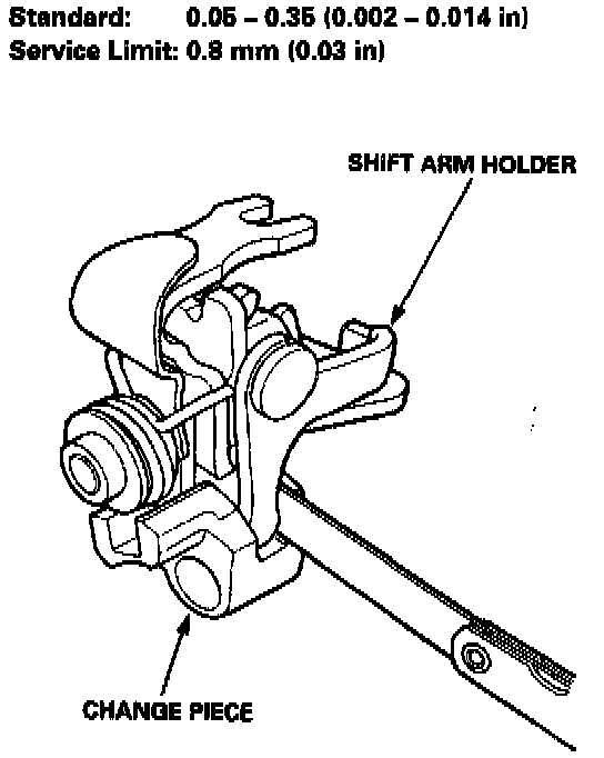 9. Measure the clearance between the shift arm holder and the change piece.