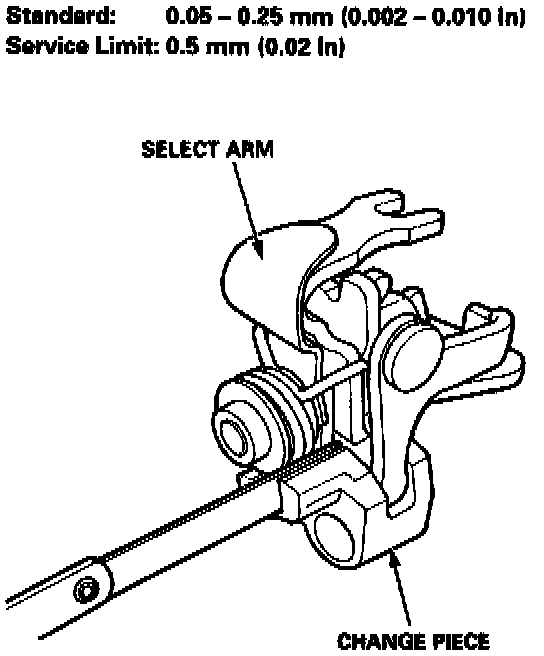 11. Measure the clearance between the select arm and the change piece.