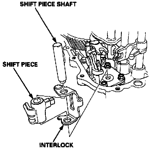 1. Remove the shift piece shaft, then remove the shift piece and the interlock.