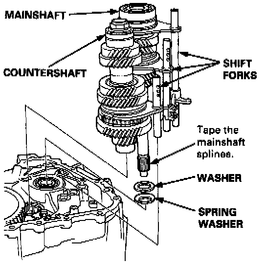 NOTE: Tape the mainshaft spline before removing the mainshaft and the countershaft assemblies.